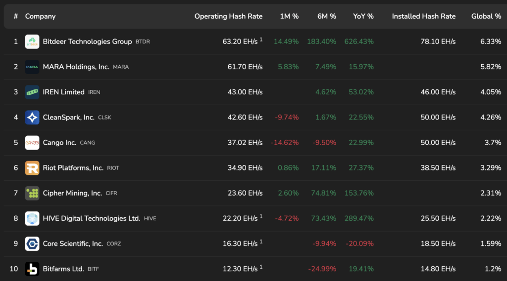 Bitcoin hashrate ranking (Source: bitcoinminingstock.io)